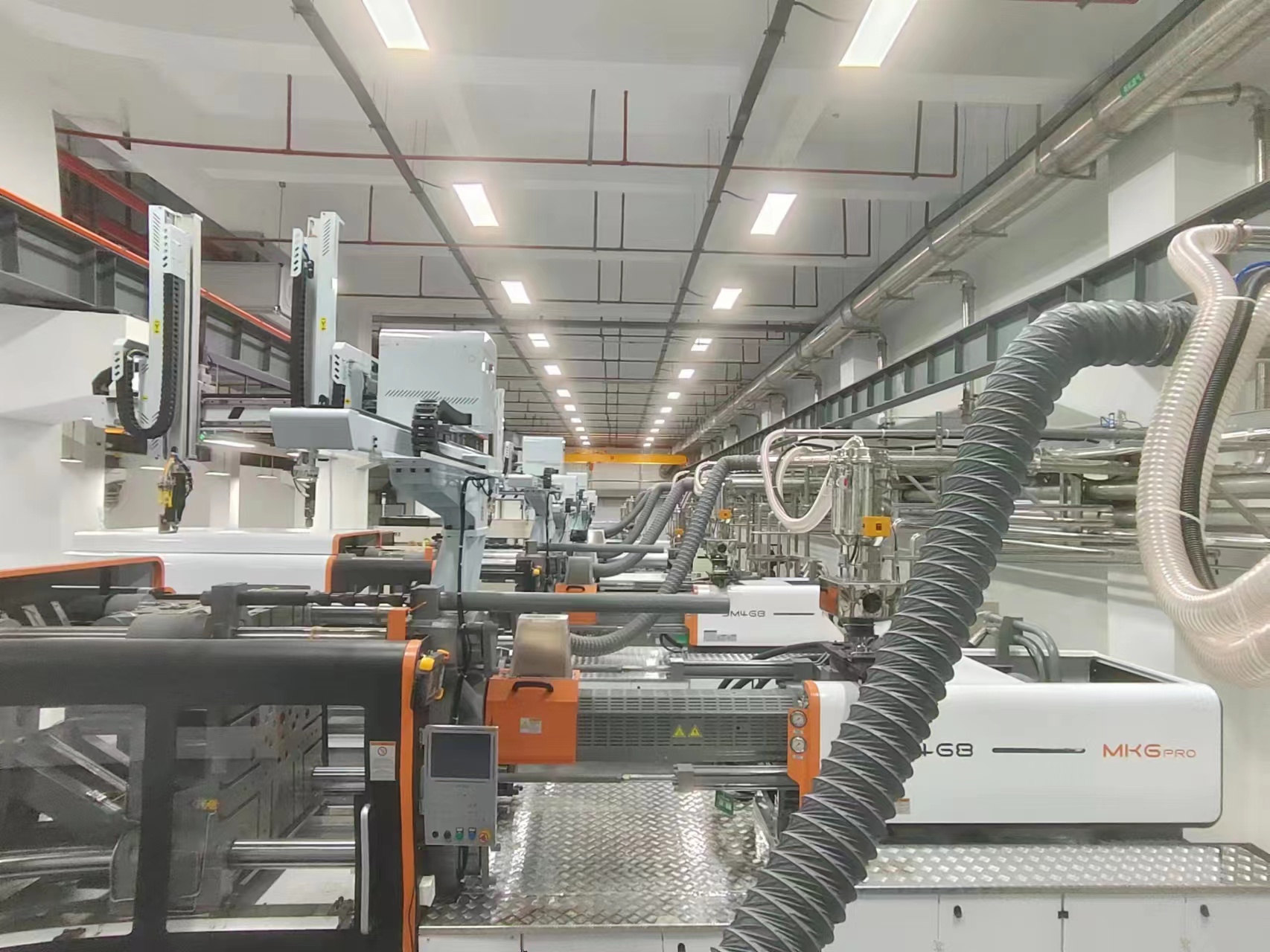 集中輸送系統(tǒng)通過配合除濕干燥系統(tǒng)使用,可使用除濕干燥送循環(huán)后會對輸送管線進(jìn)行清理,確保管路內(nèi)沒有殘余的粒料,在避免原料回潮的同時,也保證了加入注塑機(jī)中的原料性能的一致,在真空負(fù)壓作用下原料中原由的粉塵會通過粉塵過濾系統(tǒng)被過濾出來,有助于提高成型產(chǎn)品的質(zhì)量。